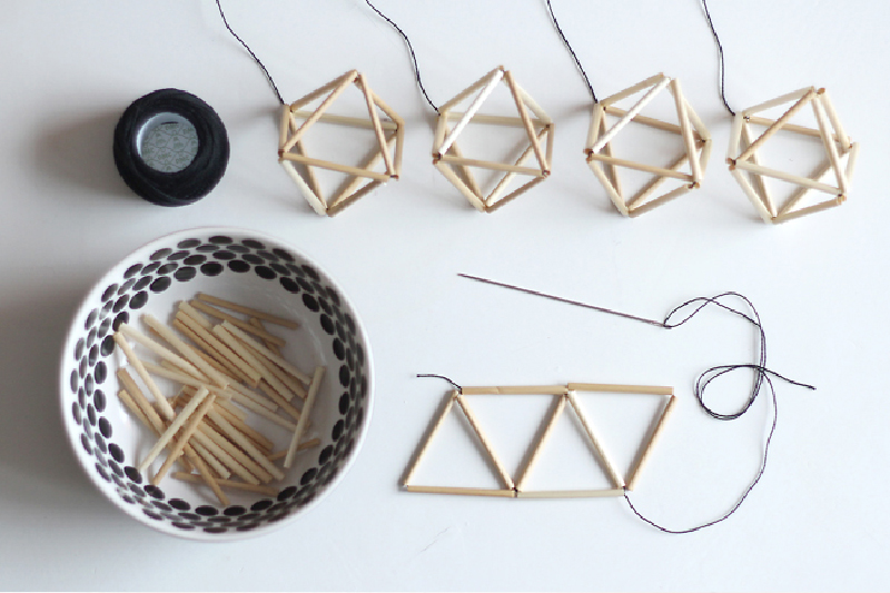 - un kit avec les fournitures et les outils spécifiques pour la réalisation d’un mobile Himmeli (à commander 4 jours ouvrés minimum avant la date de l’atelier).