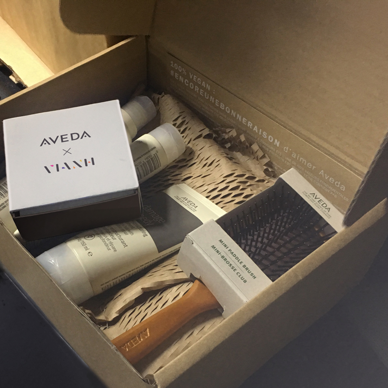 de la marque Aveda, contenant des produits de soins de cheveux abîmés