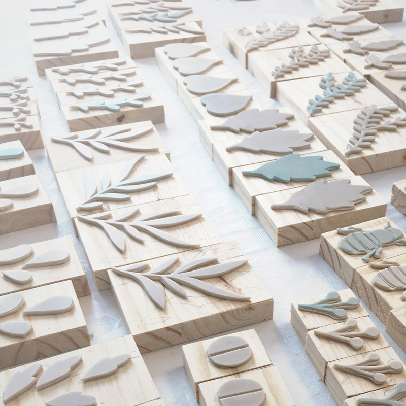 Une vingtaine de pochoirs fabriqués, 90 tampons ont été réalisés à la main pour l'atelier.